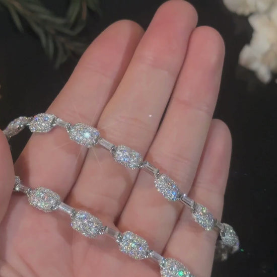 Turn heads with this 7MM Moissanite Cushion Link Chain Necklace, a bold yet elegant piece crafted in premium S925 sterling silver and available in silver, gold, and rose gold finishes. Each cushion-shaped link is meticulously iced with VVS Moissanite stones in D color, ensuring maximum brilliance and a diamond-like sparkle that’s GRA certified and tester-approved.