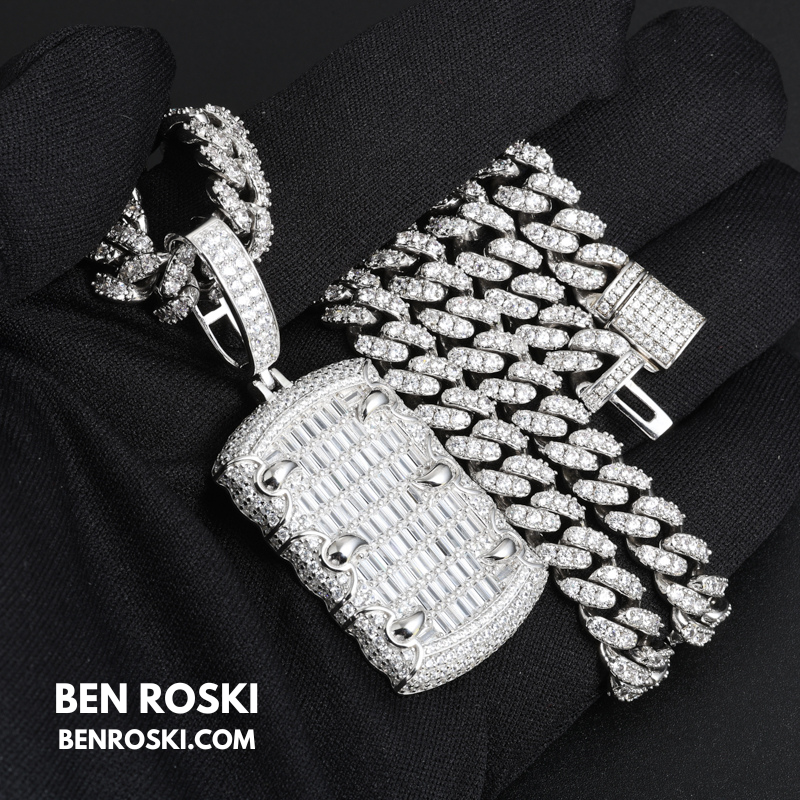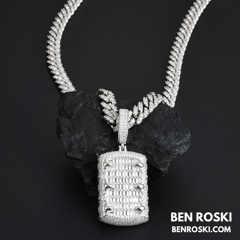 Introducing the Baguette Dog Tag Pendant from Ben Rosk – a luxurious statement piece designed for those who demand unmatched brilliance and bold design. Expertly crafted in solid S925 sterling silver, this pendant is available in Silver, Gold Plated, and Rose Gold Plated finishes.