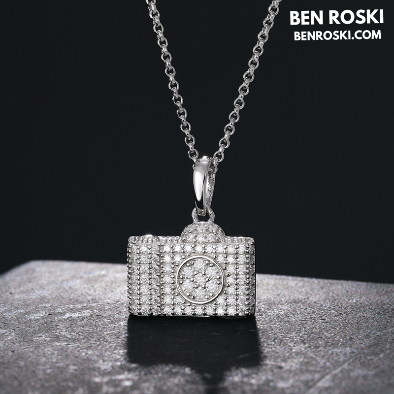 Capture your passion for photography in luxury with the Camera Pendant Necklace by Ben Roski. This beautifully detailed pendant is crafted in solid S925 sterling silver and is available in three stunning finishes: classic silver, radiant gold-plated, and elegant rose gold-plated.
