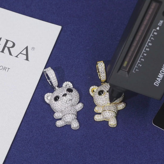 Dancing Teddy Bear Pendant Sterling Silver, Gold & Rose Gold | VVS Moissanite | GRA Certified