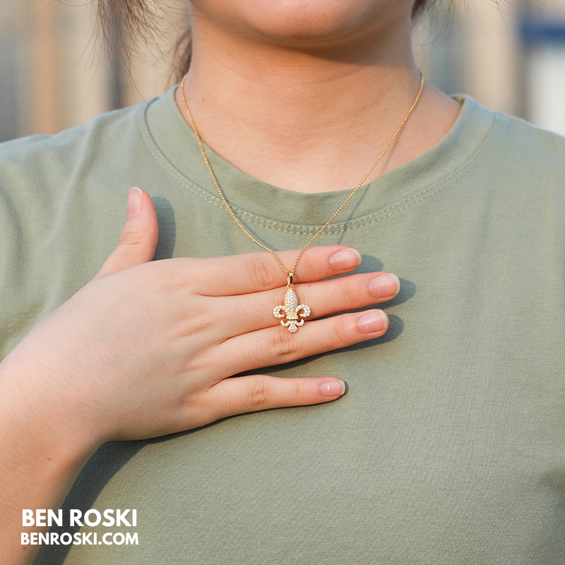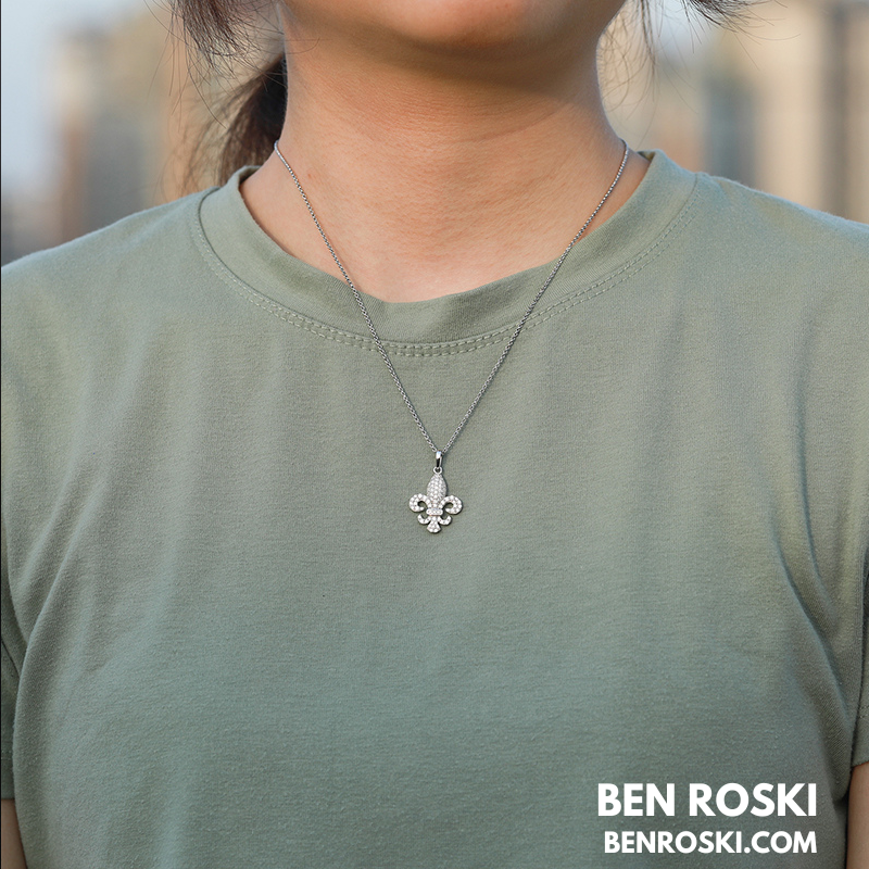 Fleur-de-Lis Moissanite Pendant Sterling Silver or Gold/Rose Gold Plated | VVS Moissanite | GRA Certified