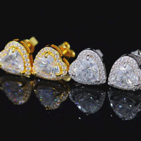 Heart Moissanite Stud Earrings Sterling Silver, Gold, or Rose Gold | VVS1 Moissanite | GRA Certified