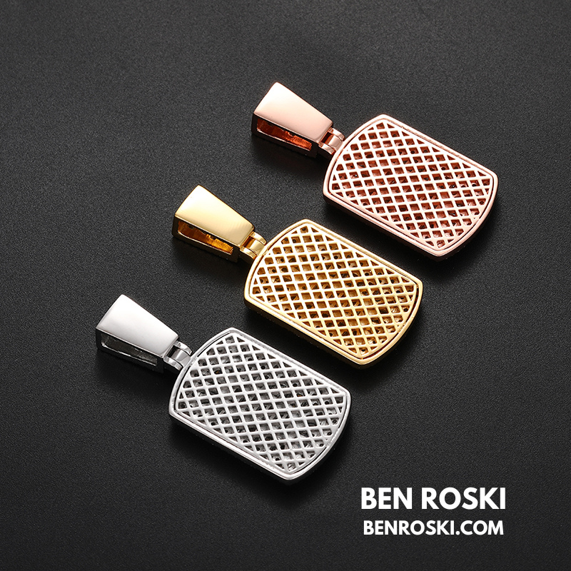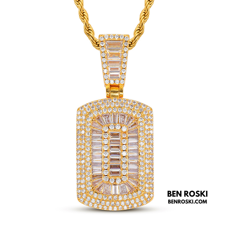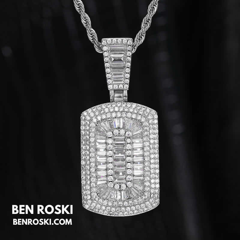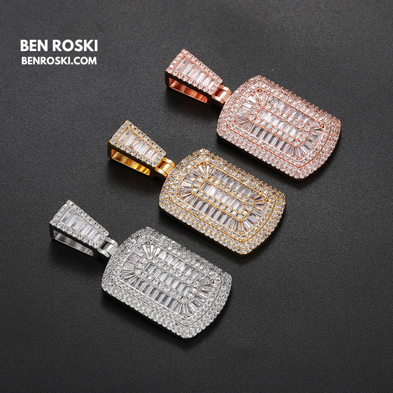 Baguette Cluster Dog Tag Pendant Sterling Silver, Gold & Rose Gold | VVS Moissanite | GRA Certified