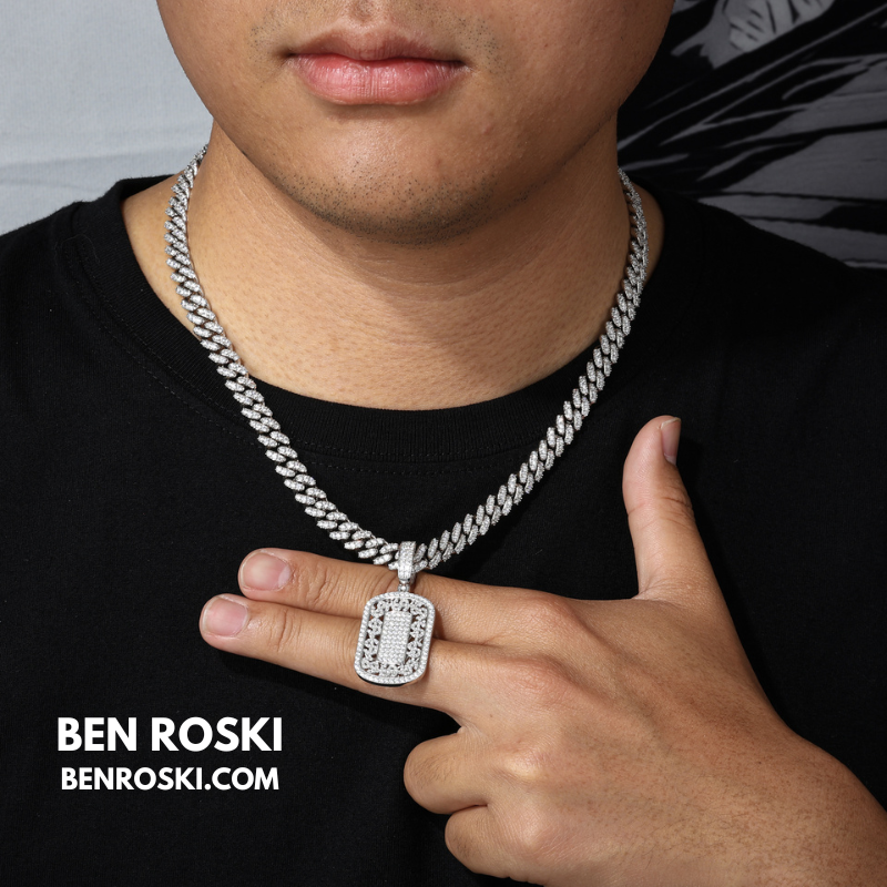 Turn heads with this stunning Iced Cuban Frame Pendant, crafted from solid S925 sterling silver and available in three luxurious finishes: Silver, Gold Plated, and Rose Gold Plated. The unique rectangular frame design features a Cuban link pattern surrounding a fully iced centerpiece, giving it a bold, statement-making presence.