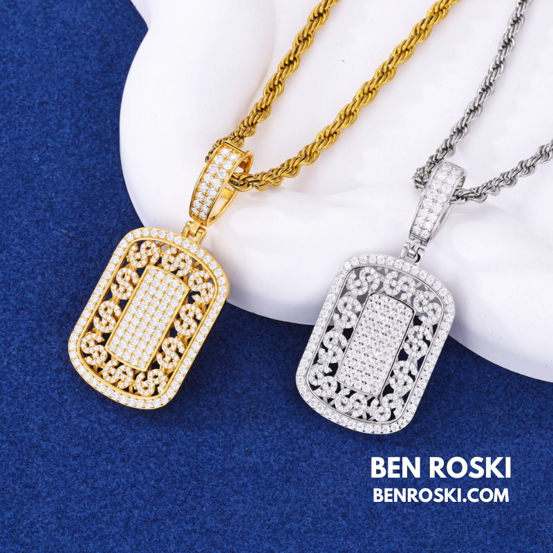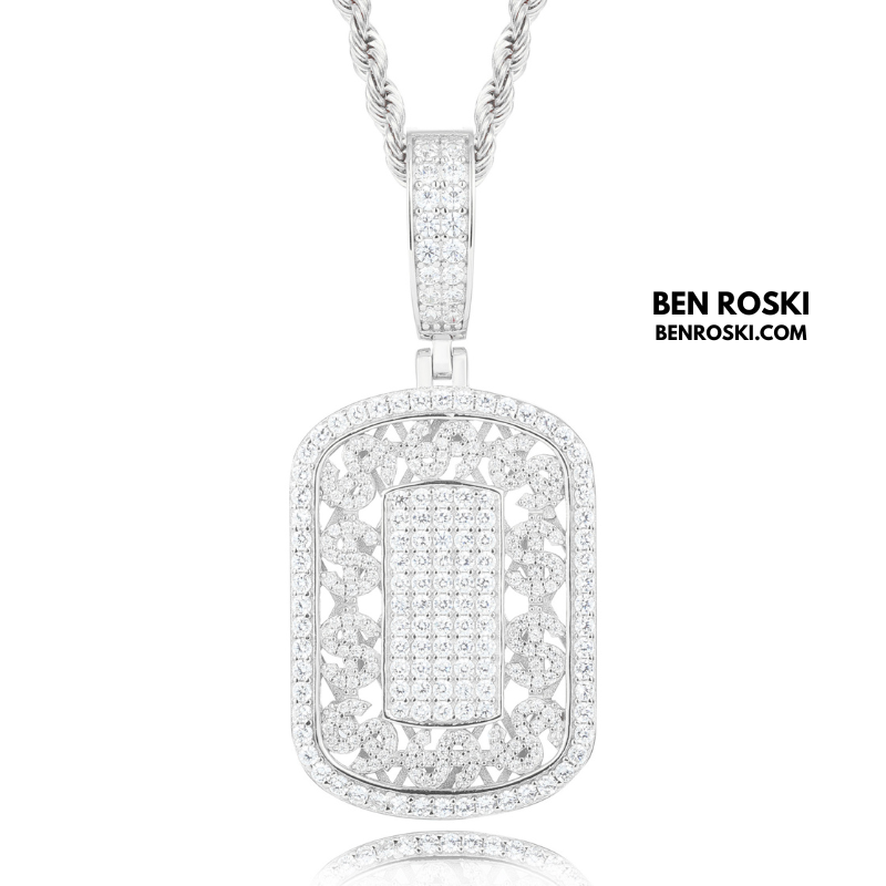 Iced Cuban Frame Pendant Sterling Silver or Gold / Rose Gold Plated | VVS Moissanite | GRA Certified