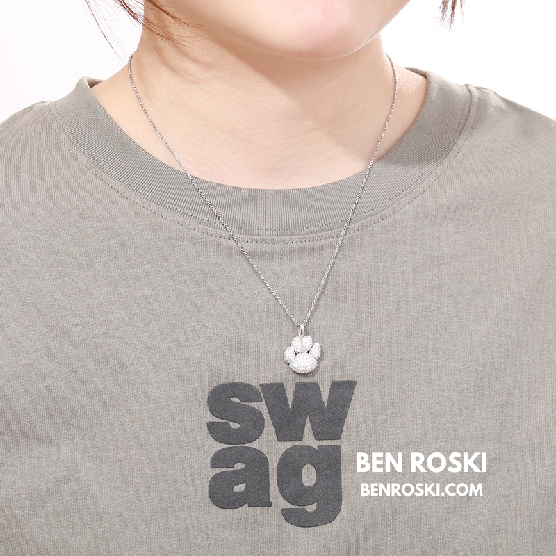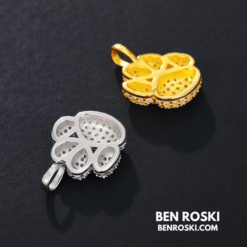 Moissanite Paw Print Pendant Necklace | Sterling Silver, Gold, or Rose Gold | VVS1 | GRA Certified