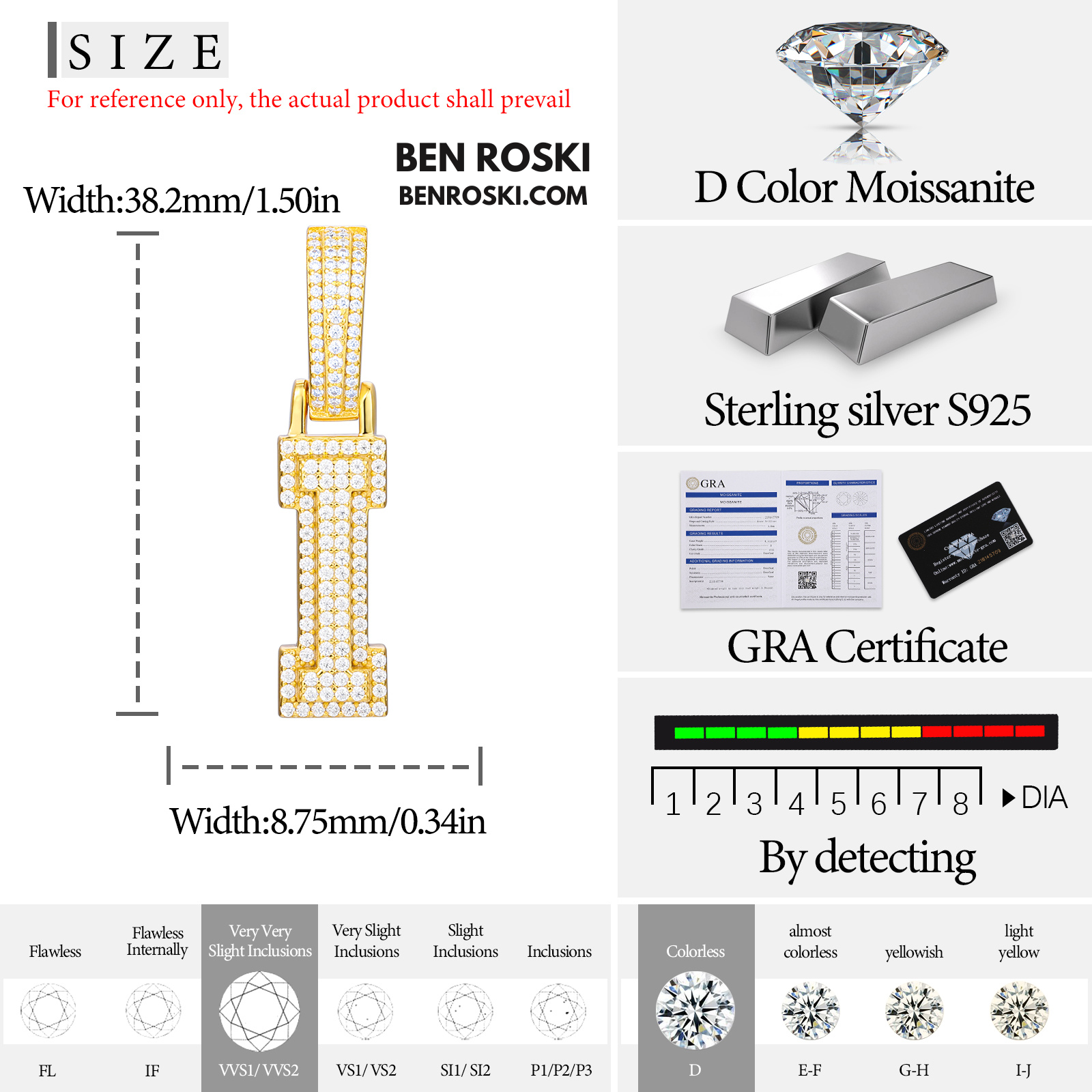 Each pendant is meticulously handset with VVS1 Moissanite stones (D Color) that deliver