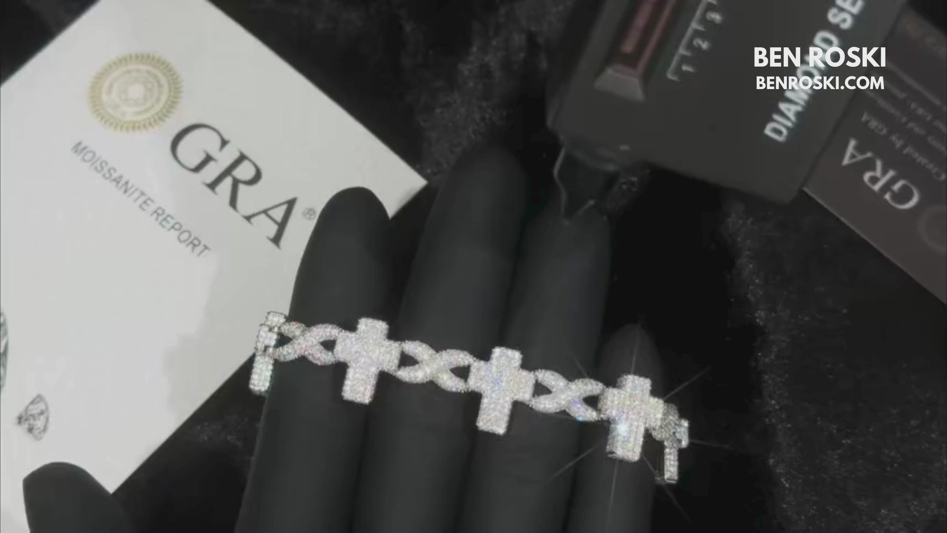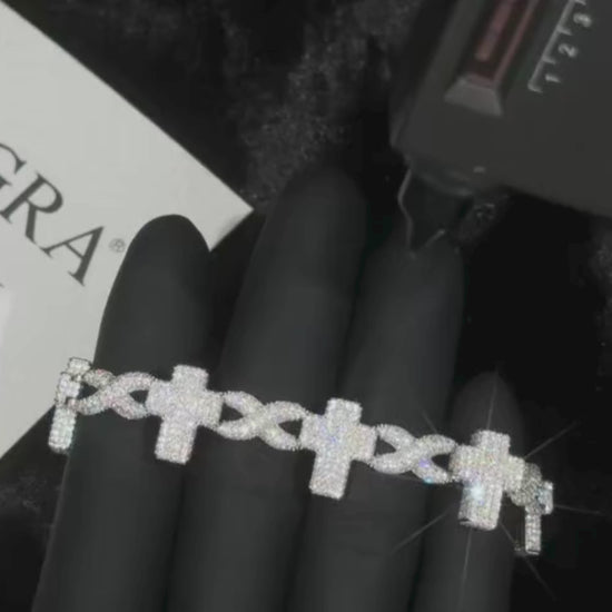 Iced Cross Moissanite Bracelet – 15MM | 7 &8-Inch | Solid 925 Sterling Silver | GRA Certified | Gold & Rose Gold Plated Variants