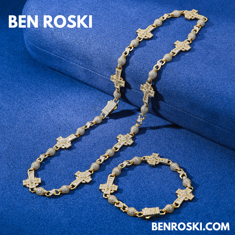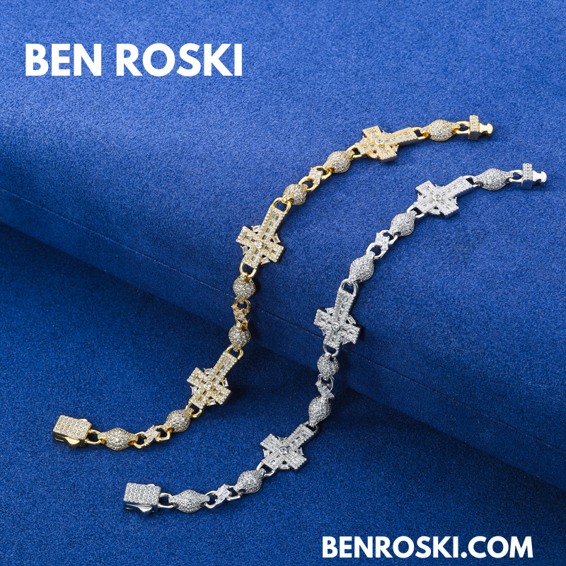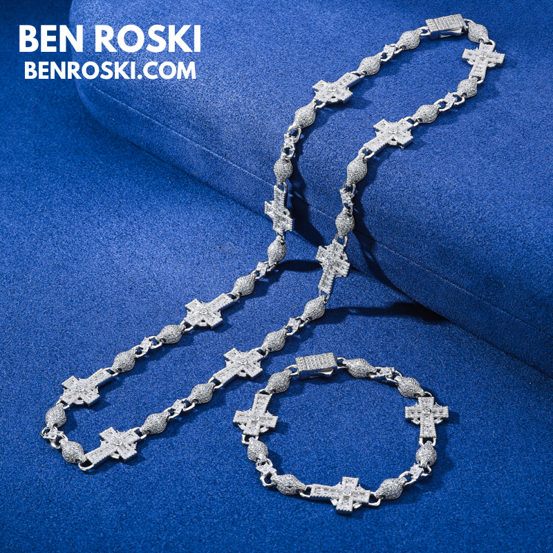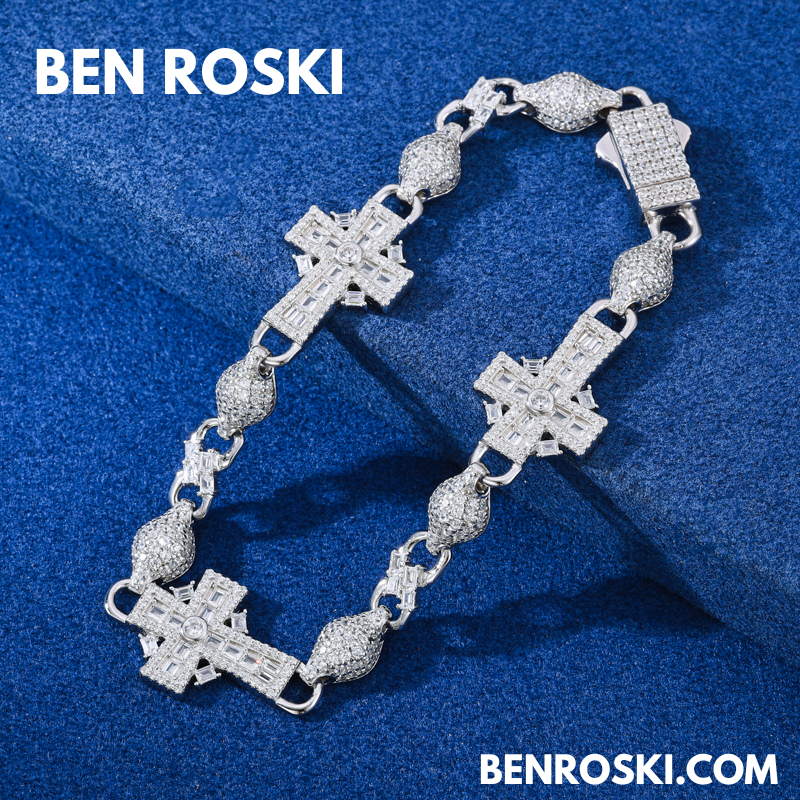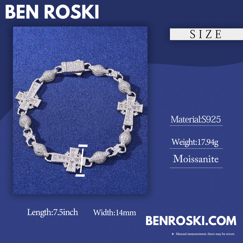 Elevate your style with the Moissanite Cross Link Bracelet, expertly crafted in solid S925 sterling silver and available in silver, gold-plated, and rose gold-plated finishes. This 14MM bracelet showcases an intricate design of alternating cross and marquise links, each meticulously set with VVS moissanite stones for an intense, diamond-like sparkle.