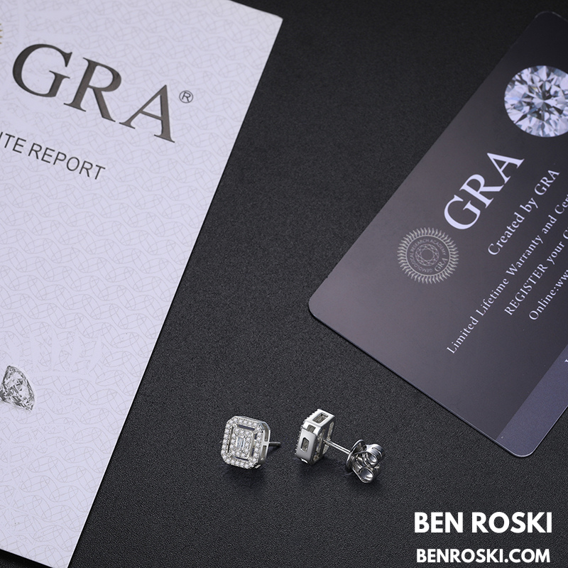 Emerald Halo Stud Earrings Sterling Silver, Gold & Rose Gold | VVS Moissanite | GRA Certified