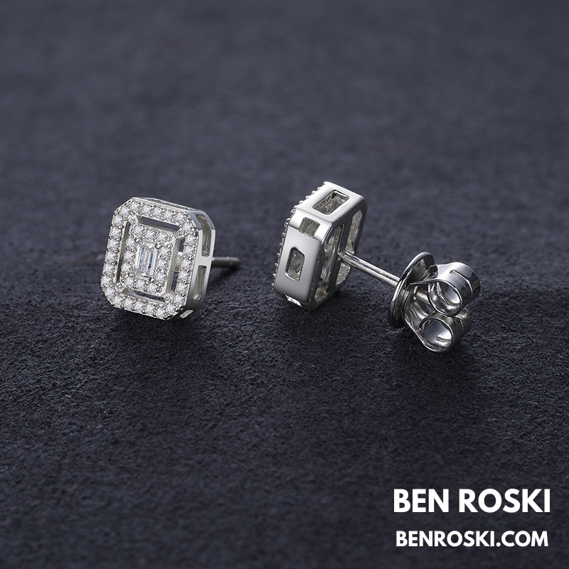 Elevate your style with these luxurious 7MM Emerald Halo Stud Earrings, masterfully crafted in solid S925 sterling silver and available in elegant silver, bold gold-plated, and romantic rose gold-plated finishes. Each earring features a dazzling emerald-cut VVS moissanite center stone surrounded by a double halo of meticulously set stones, creating a breathtaking sparkle from every angle.