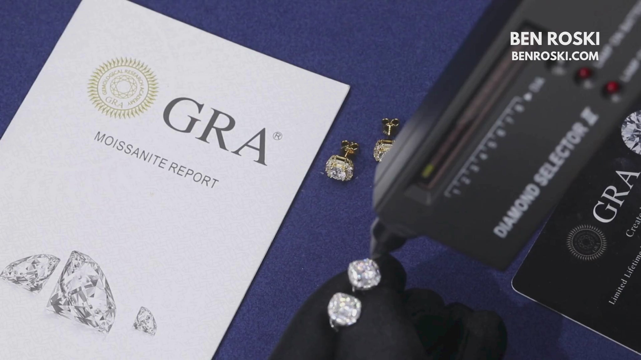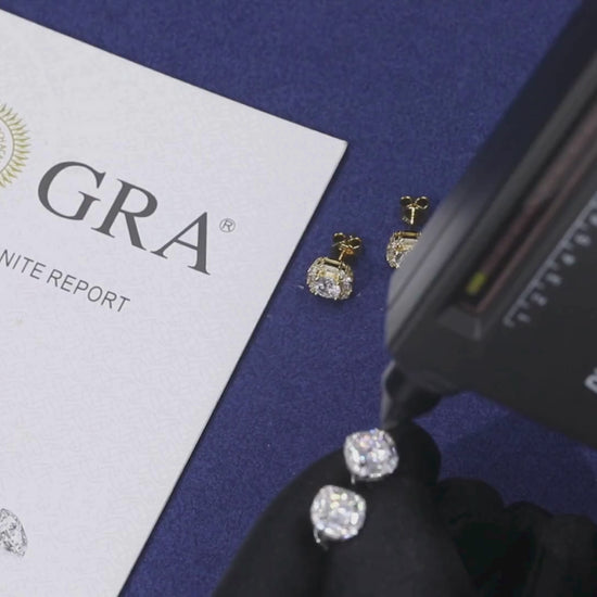 Baguette Halo Stud Earrings Sterling Silver or Gold/Rose Gold Plated | VVS Moissanites | GRA Certified