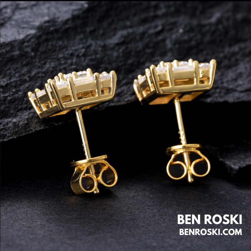 Square Cluster Stud Earrings Sterling Silver, Gold, or Rose Gold | VVS Moissanite | GRA Certified