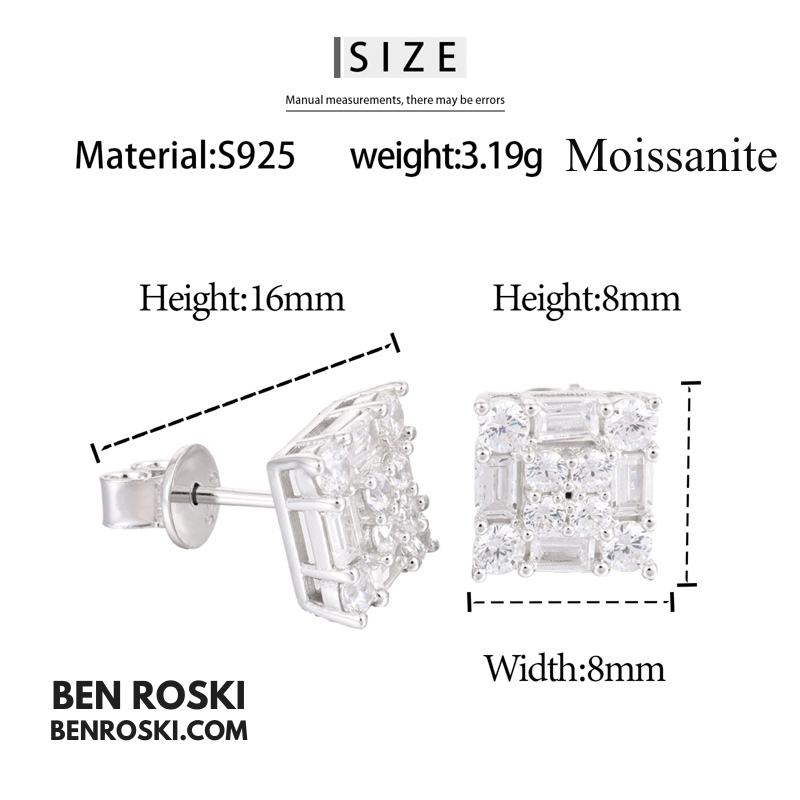 Elevate your everyday style with these 6MM Square Cluster Stud Earrings, meticulously crafted from solid S925 sterling silver and available in three stunning finishes: Silver, Gold-Plated, and Rose Gold-Plated. Each earring features a precision-set cluster of VVS Moissanite stones, delivering unmatched brilliance and fire that rivals natural diamonds.