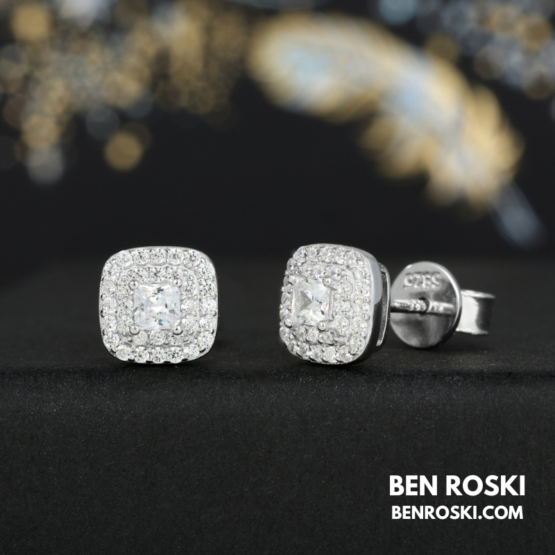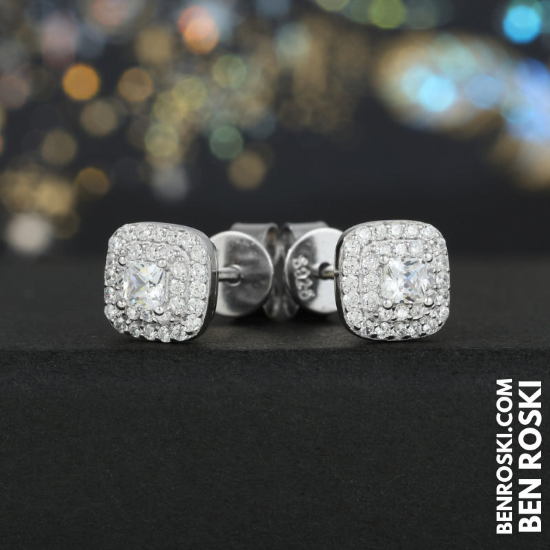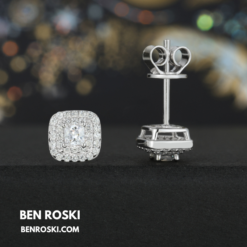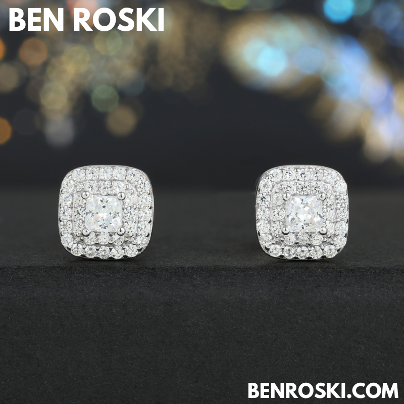 Turn every glance into admiration with these 7MM Cushion Halo Stud Earrings, exquisitely crafted from solid S925 sterling silver and available in Silver, Gold-Plated, and Rose Gold-Plated finishes. The center features a dazzling cushion-cut VVS Moissanite stone, surrounded by a meticulously set double halo of brilliant Moissanite accents for maximum sparkle.