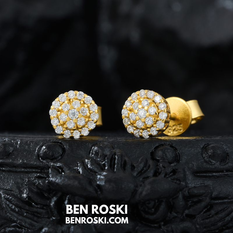 Round Cluster Stud Earrings Sterling Silver or Gold/Rose Gold Plated | VVS Moissanite | GRA Certified