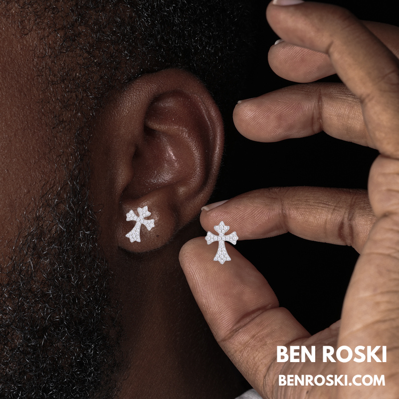Cross Moissanite Stud Earrings Sterling Silver, Gold & Rose Gold | VVS Moissanite | GRA Certified