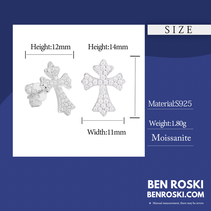 Elevate your style with these Cross Moissanite Stud Earrings, expertly crafted from solid S925 sterling silver and available in three stunning finishes: classic silver, luxurious gold plating, and elegant rose gold plating.