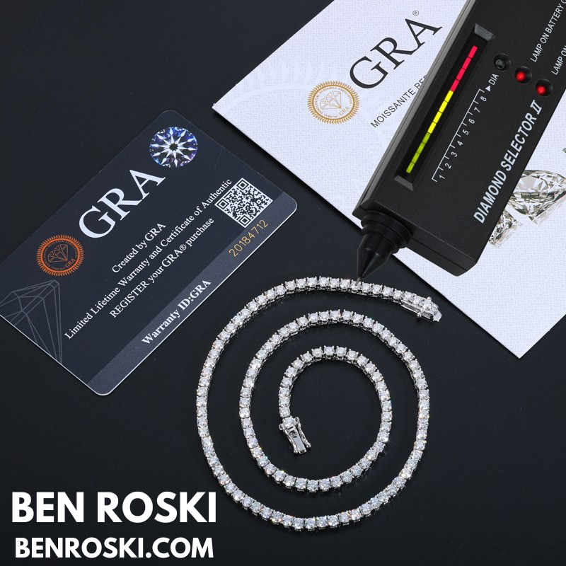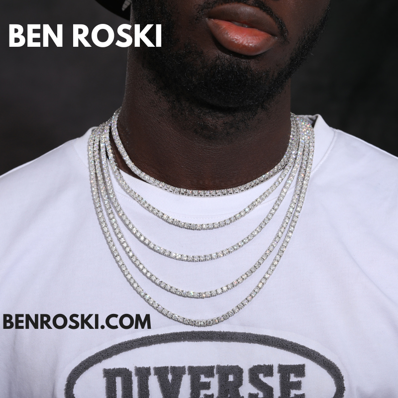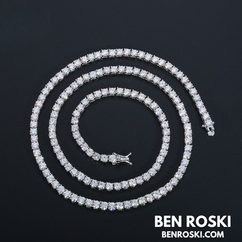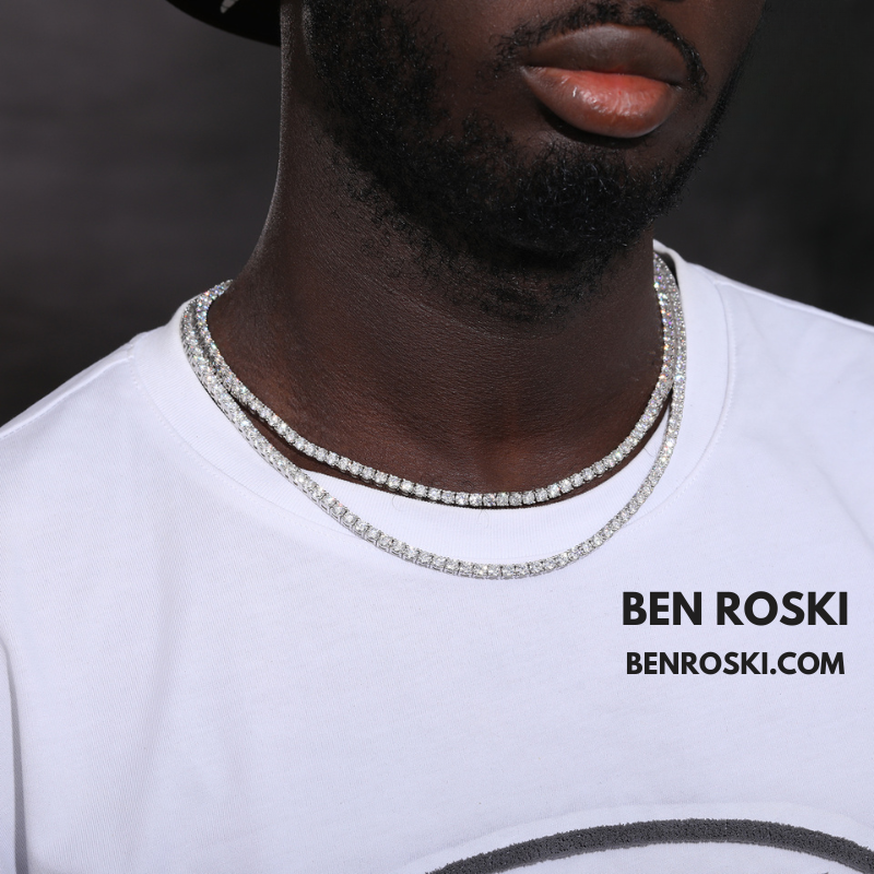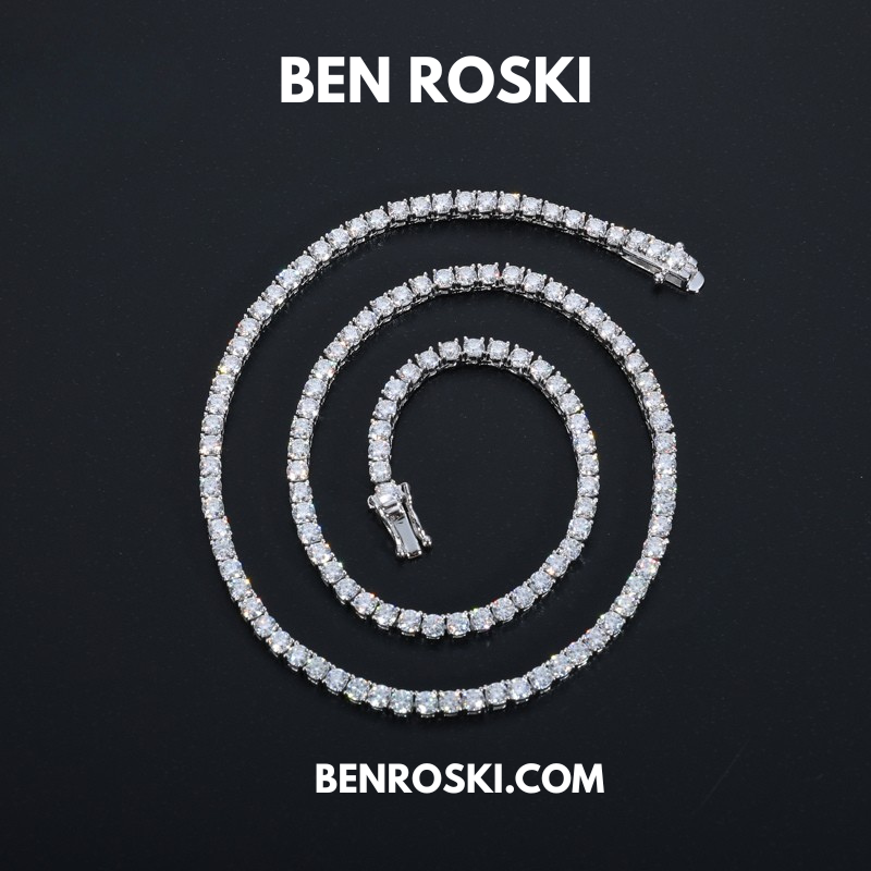 Timeless, versatile, and brilliantly iced — the 3MM Moissanite Tennis Chain Necklace by Ben Roski is the ultimate sleek and stylish statement piece. Crafted from solid S925 sterling silver and available in Silver, Gold-Plated, and Rose Gold-Plated finishes, this necklace delivers everyday luxury with a refined touch.