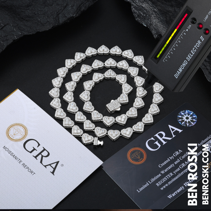 Every chain comes with a GRA certificate, verifying the VVS1/VVS2 clarity and D-color moissanites — all diamond-testers approved for guaranteed brilliance.
