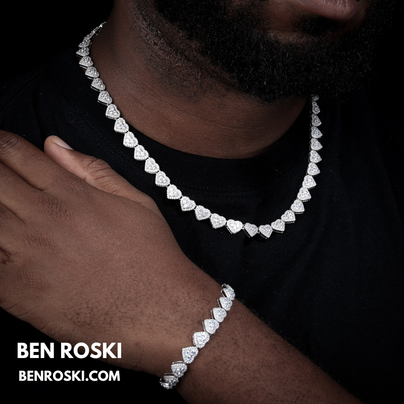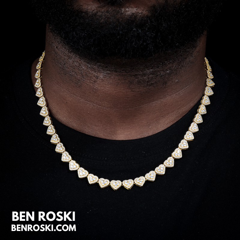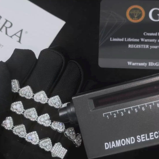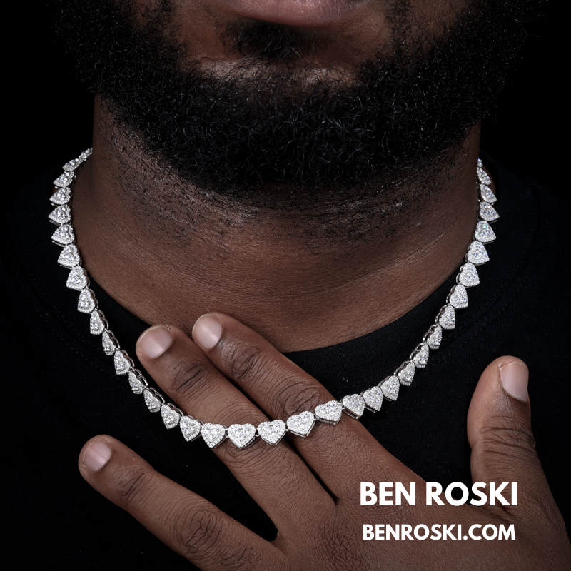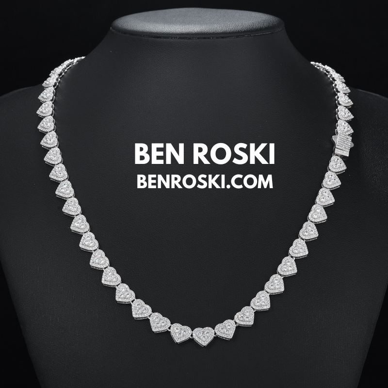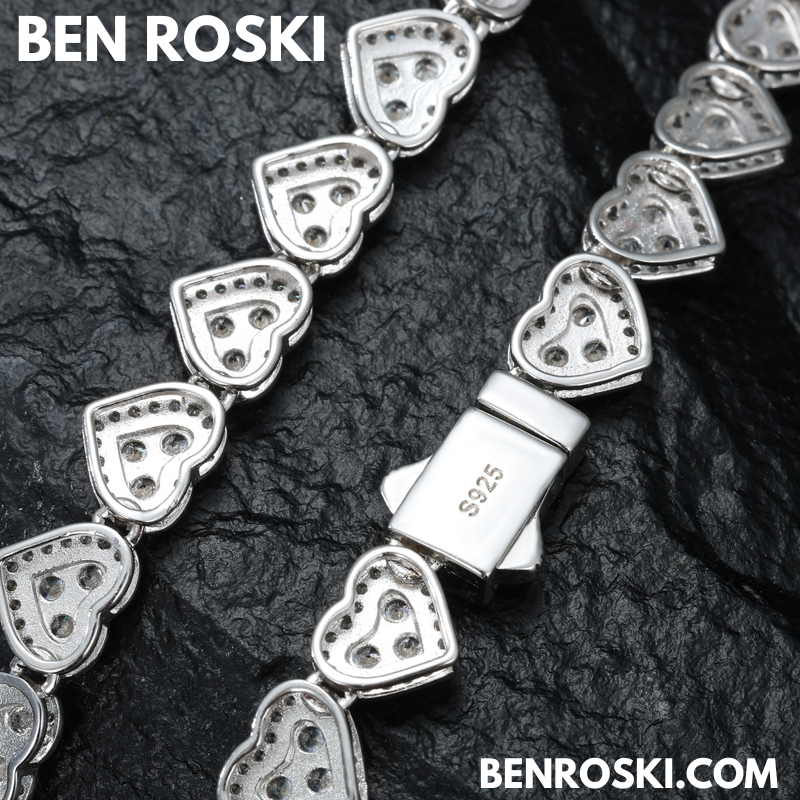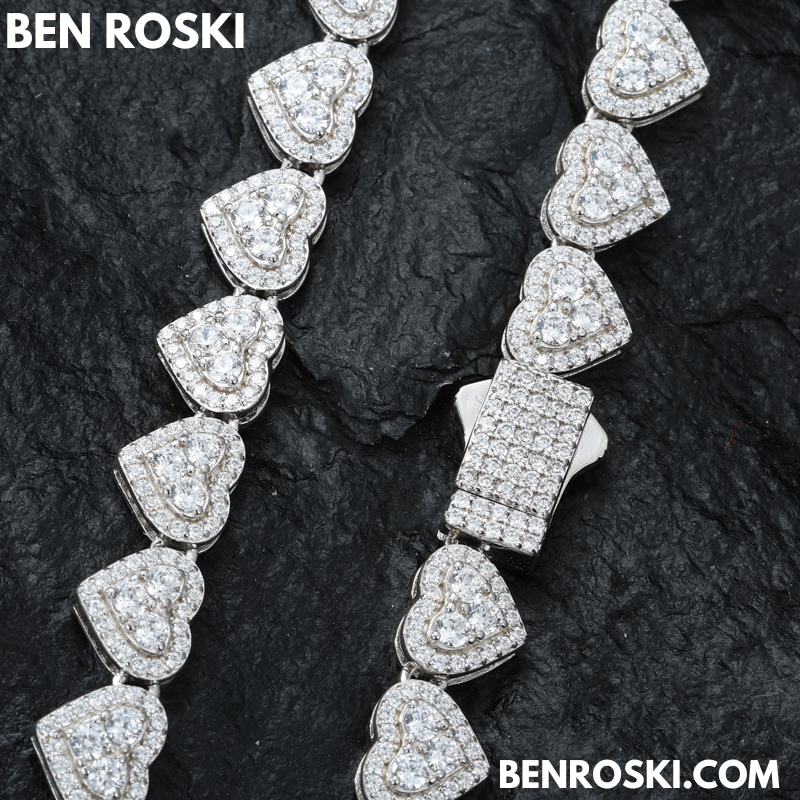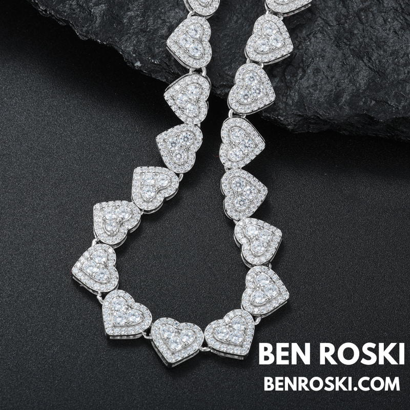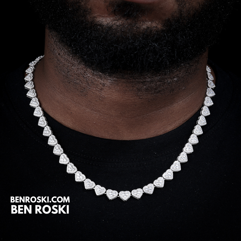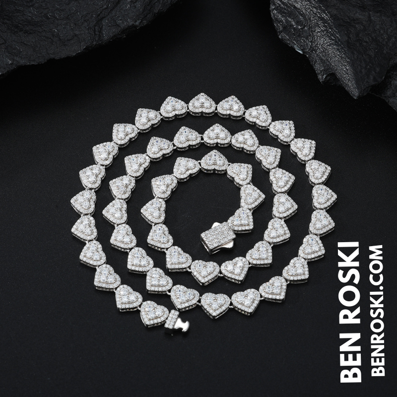 Turn heads with this 8MM Heart Moissanite Chain, blending romance and brilliance in one standout piece. Each heart-shaped link is encrusted with premium VVS moissanite stones that deliver unmatched sparkle and clarity.