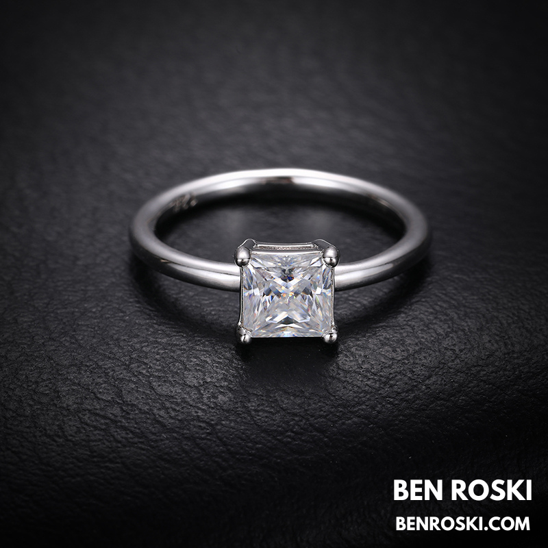 Princess Cut Moissanite Solitaire Ring Sterling Silver, Gold or Rose Gold | VVS Moissanite | GRA Certified