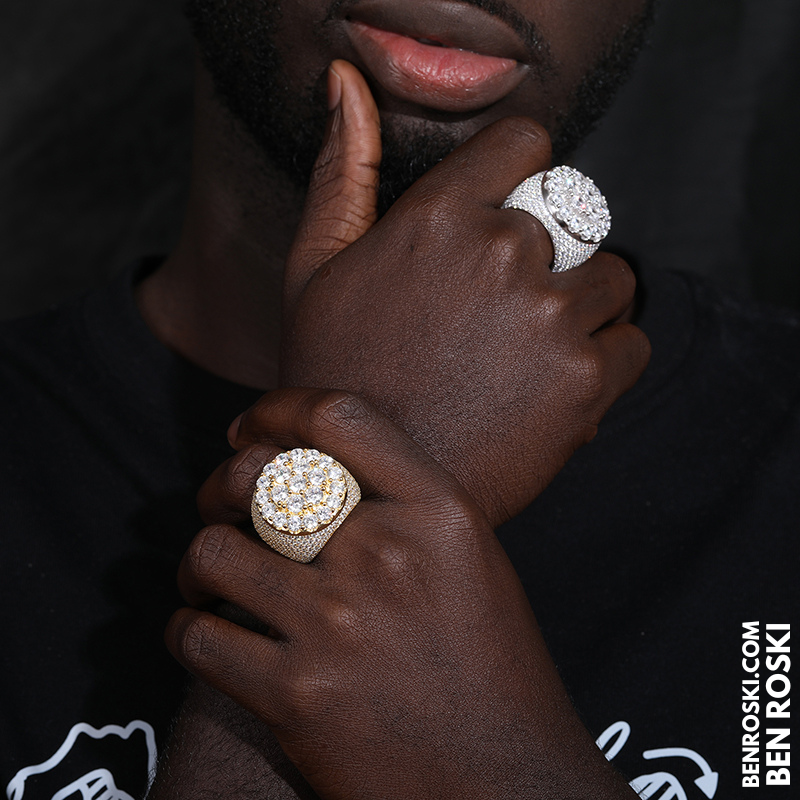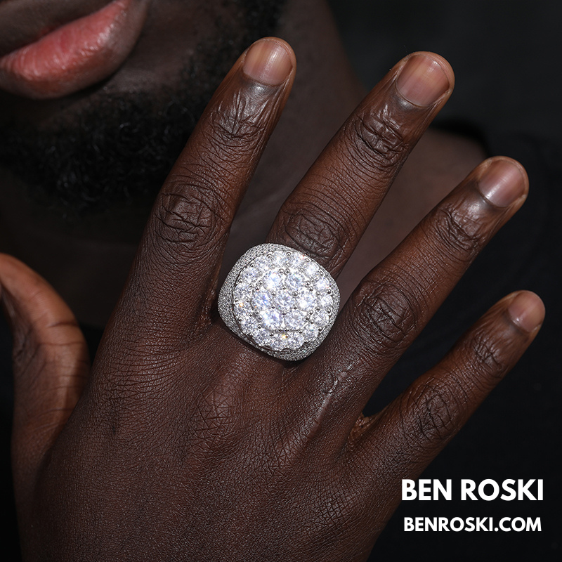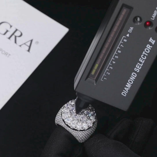 Turn every glance into admiration with our Iced Moissanite Cluster Ring, a bold and luxurious statement piece crafted for those who demand brilliance. Measuring 25.5MM in width and weighing 25g, this ring showcases a breathtaking cluster of VVS1 Moissanite stones (D Color) arranged for maximum sparkle and depth.