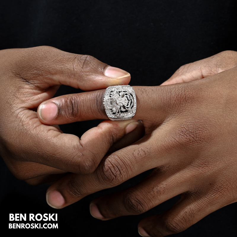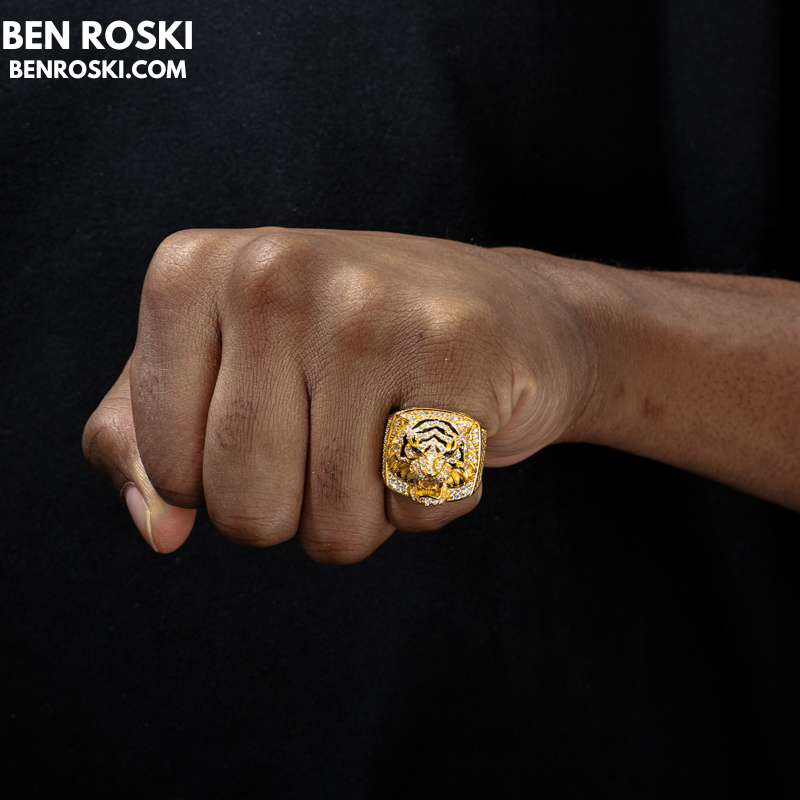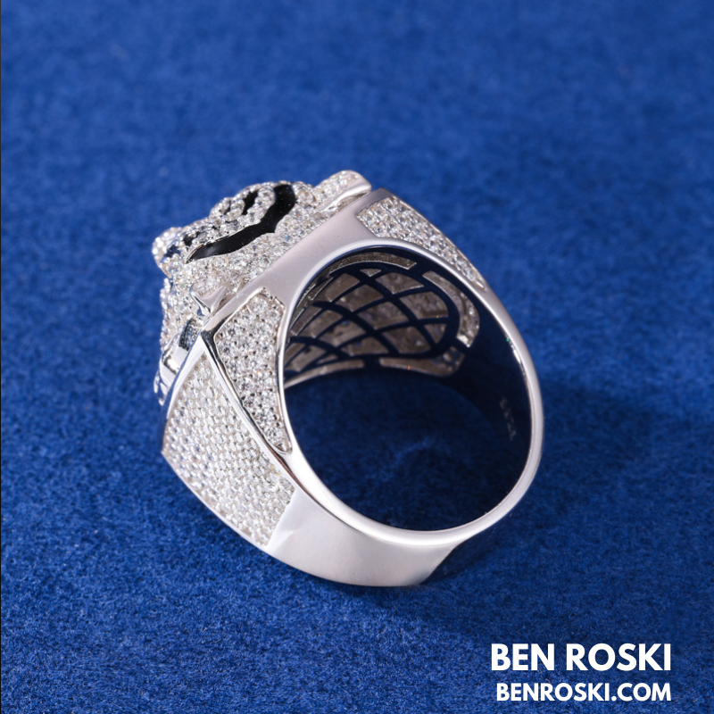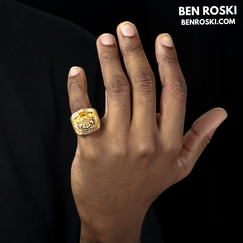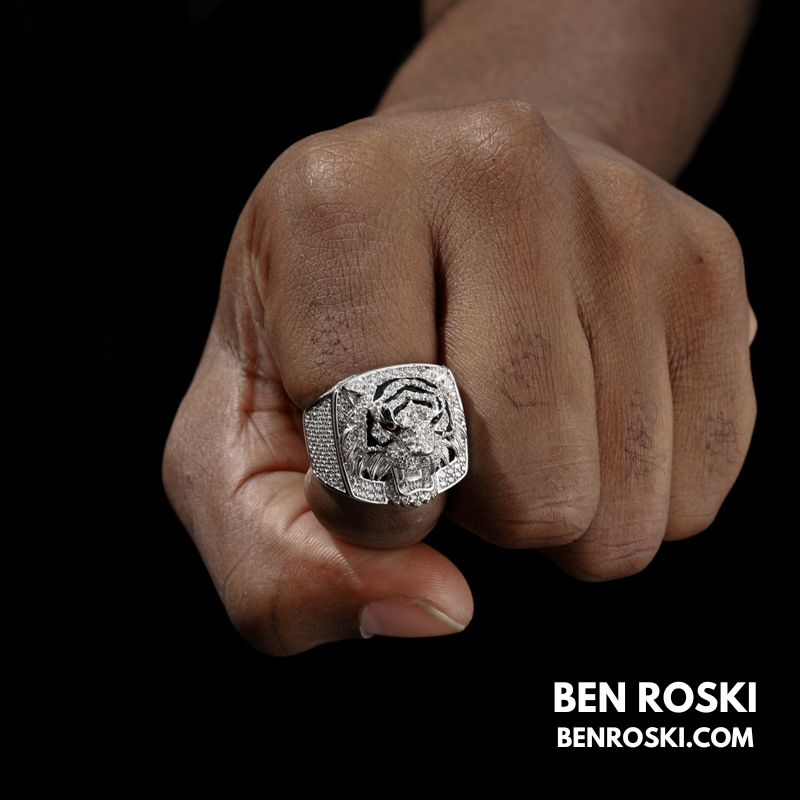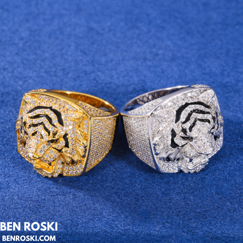 Iced-Out Tiger Head Ring Sterling Silver, Gold & Rose Gold | VVS Moissanite | GRA Certified
