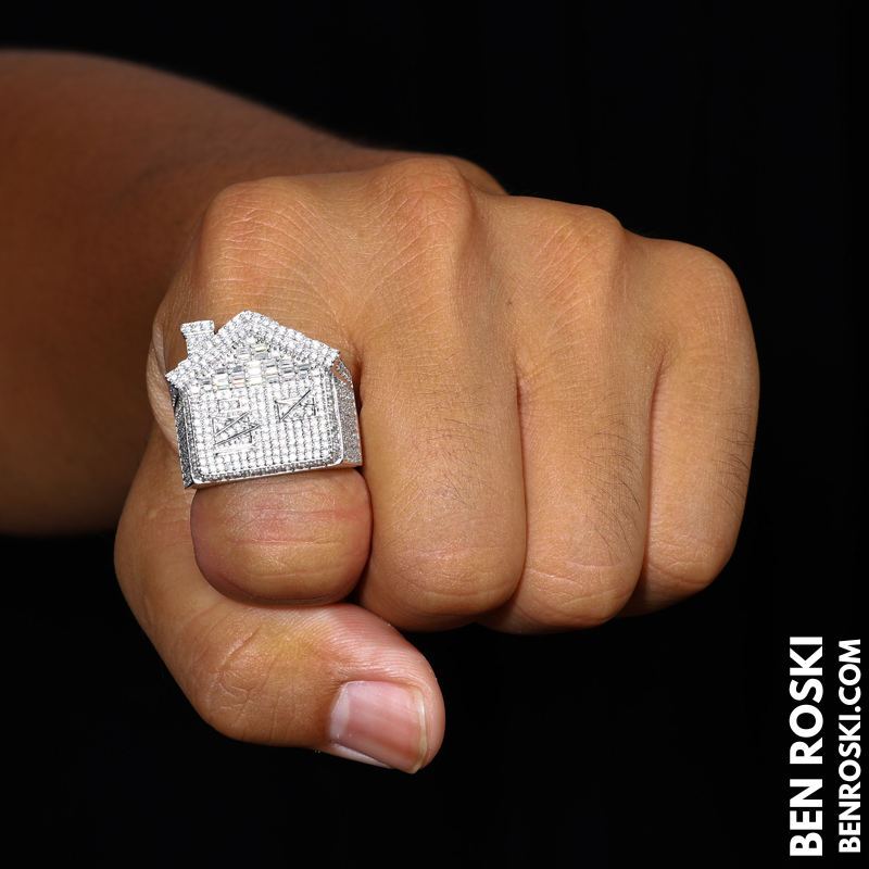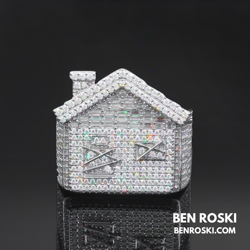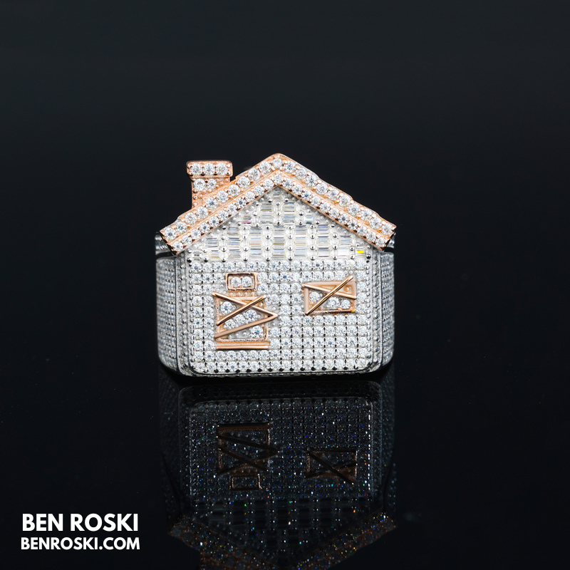 Iced-Out Roman Numeral Mansion Ring Sterling Silver or Gold/Rose Gold Plated | VVS Moissanite | GRA Certified