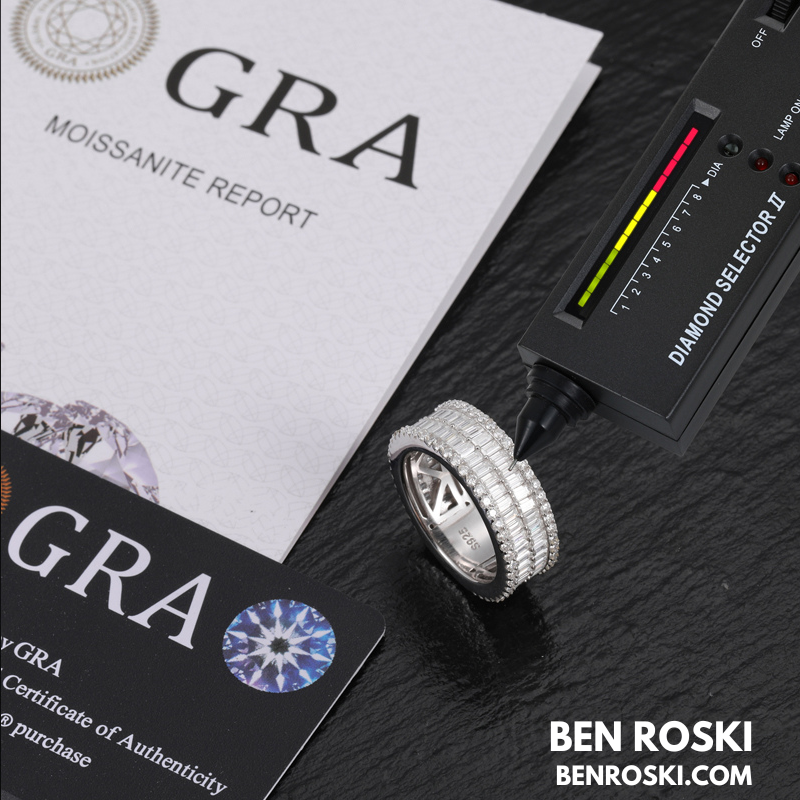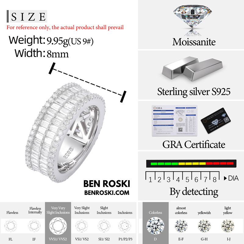 At 9.95 grams in weight and 8MM in width, this ring balances durability with refined elegance, making it perfect for both everyday wear and special occasions. Each ring is GRA certified, ensuring authenticity and superior diamond-like brilliance that passes diamond testers with ease.