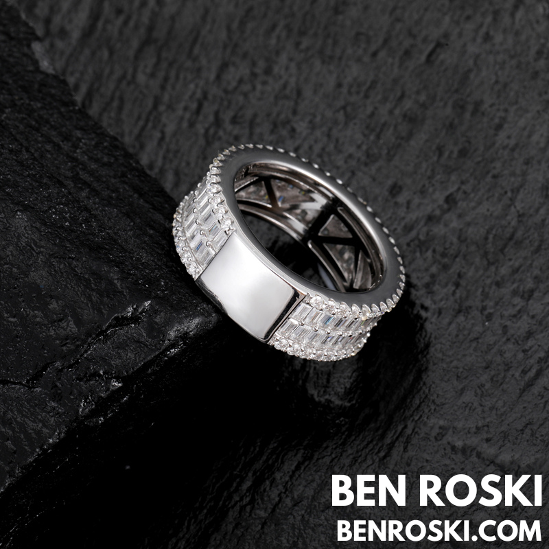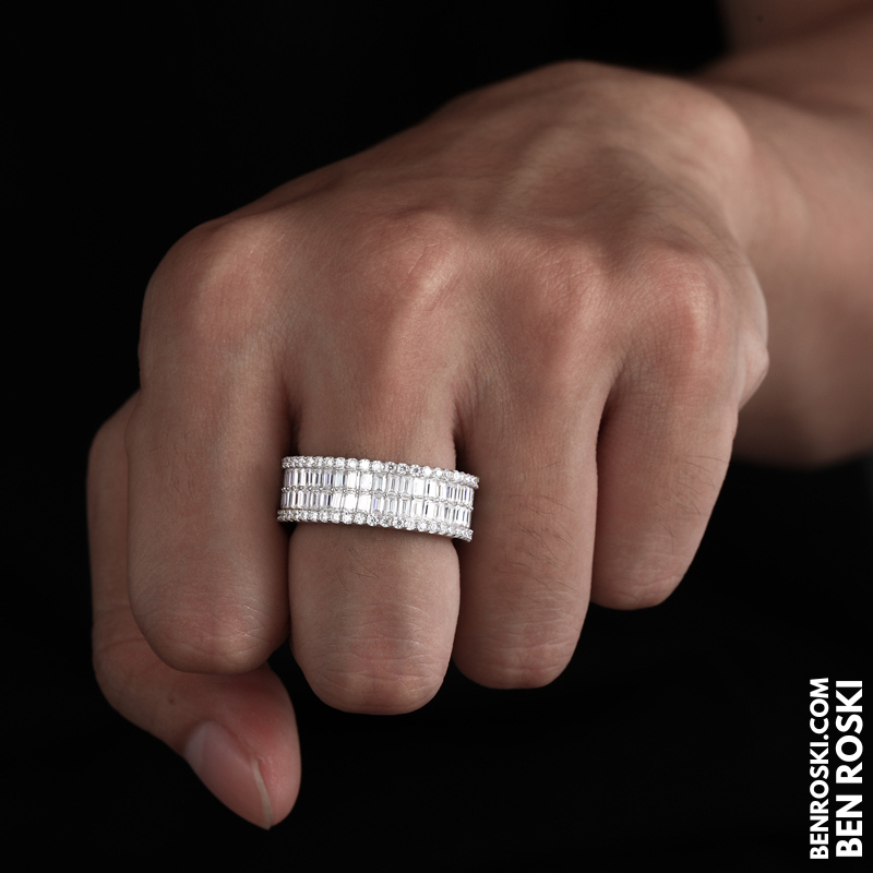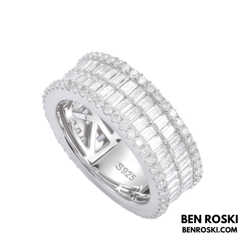 • Stone Setting: Triple-row baguette and round-cut eternity style